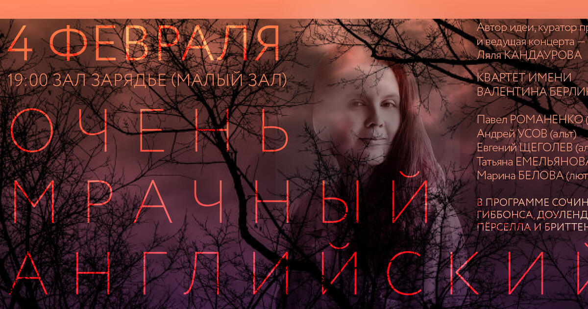 4 февраля 2022 года в Малом зале «Зарядья» состоится «Очень мрачный английский концерт», необычный музыкально-образовательный проект известного популяризатора классической музыки Ляли Кандауровой.