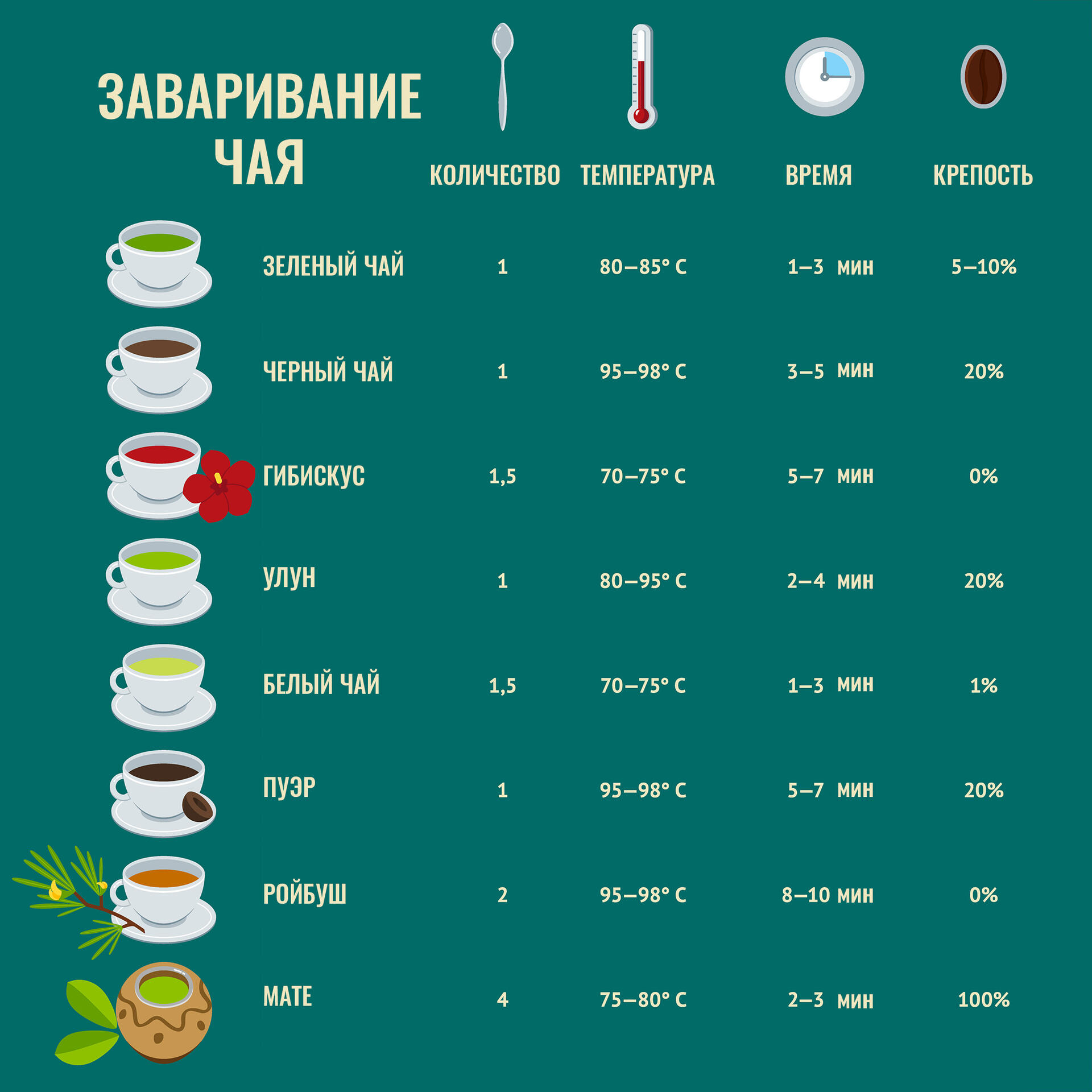 Помните, что специи и пряности добавляют только в черный чай,и в тот момент, когда он уже достаточно заварился! Их нужно совсем немного, чтобы не перебить основной вкус. Классической добавкой для нежного зеленого чая традиционно считается жасмин. А чтобы ничего не перепутать и научиться заваривать чай правильно, я подготовила для вас памятку!