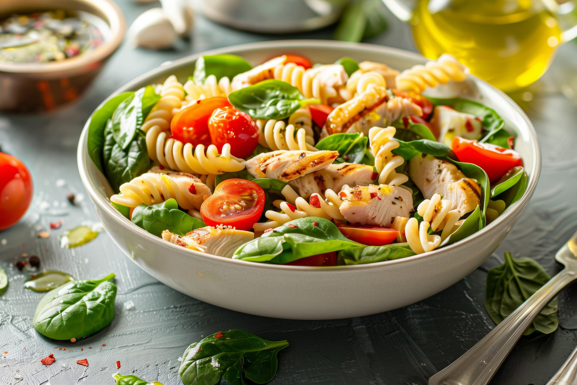 За это время паста впитает вкус заправки, и все ингредиенты «подружатся».