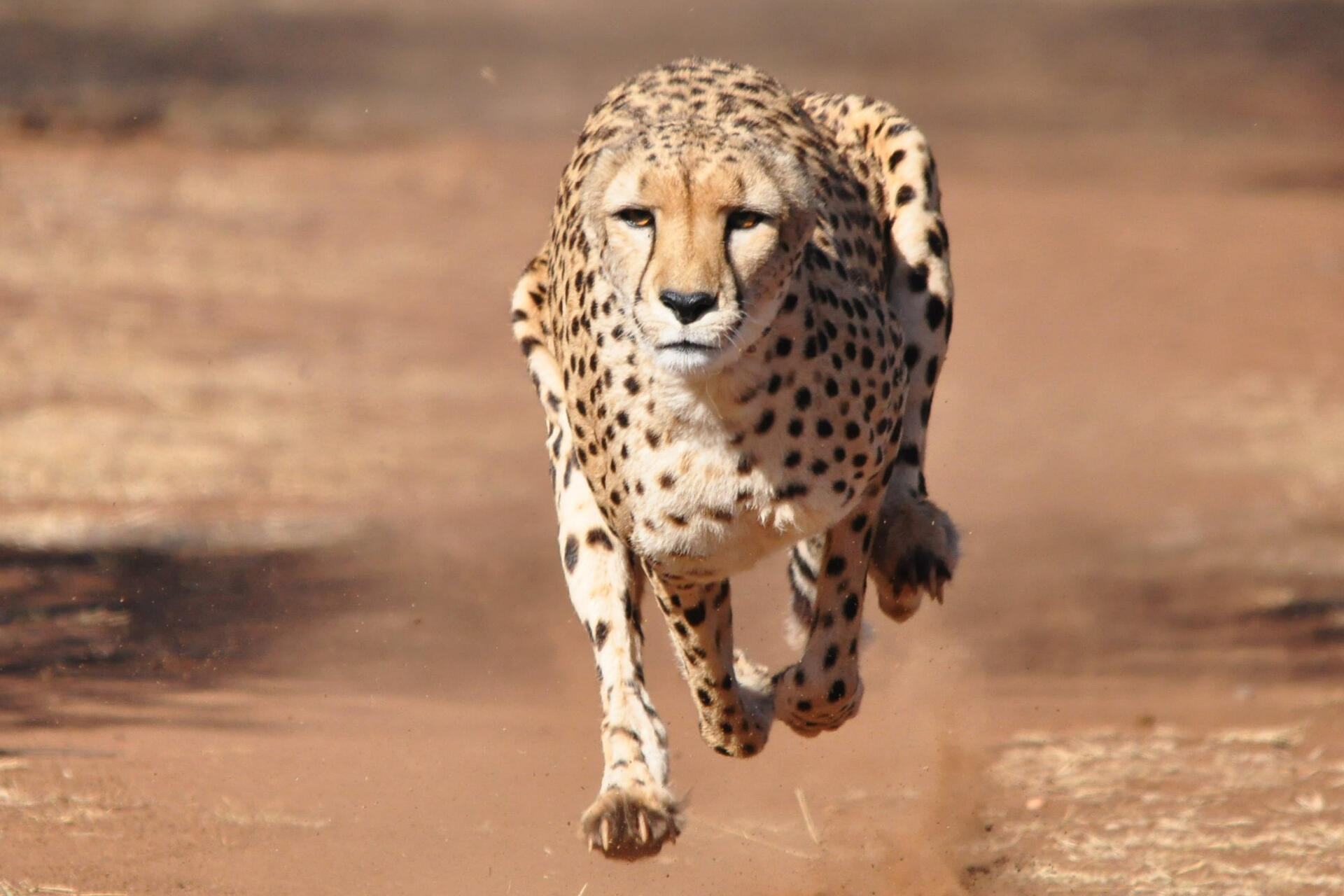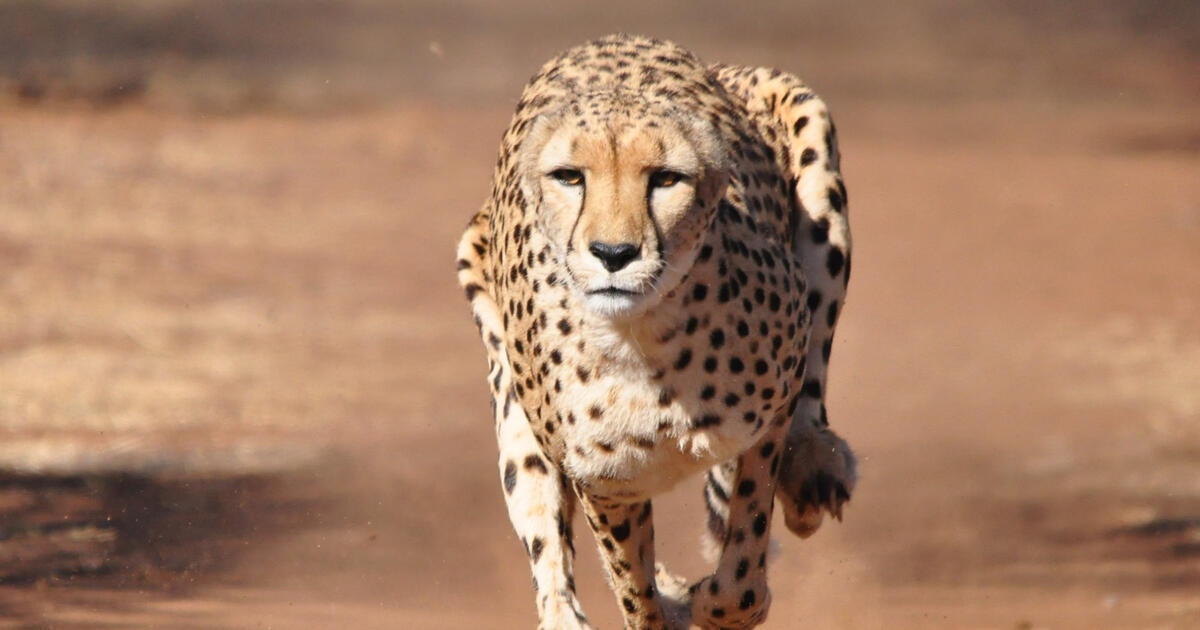 Гепард — спринтер саванны. Он бегает со скоростью 96 километров в час. Когда гепард несется, он делает огромные прыжки по 7 метров и больше половины времени буквально летит по воздуху!