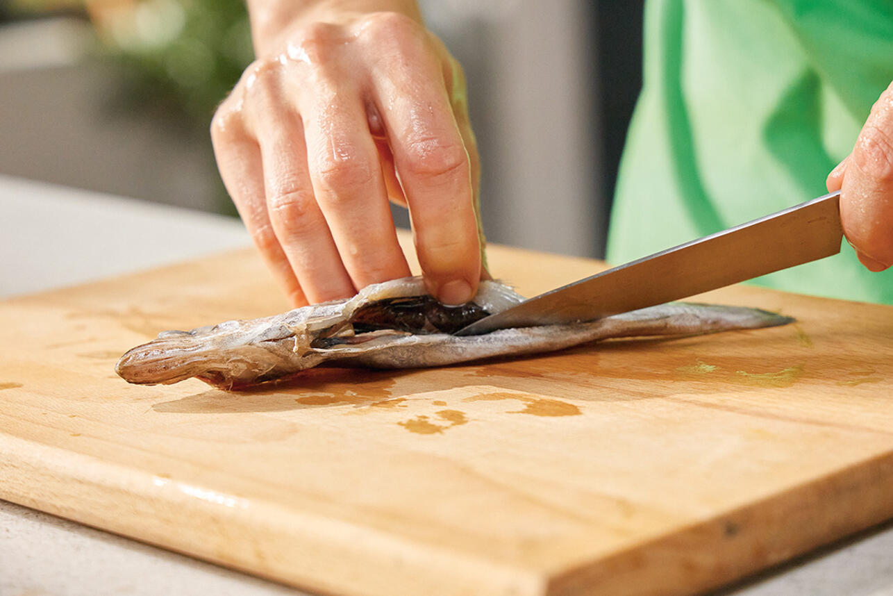 Путассу заранее разморозить, помыть, выпотрошить, удалить жабры.