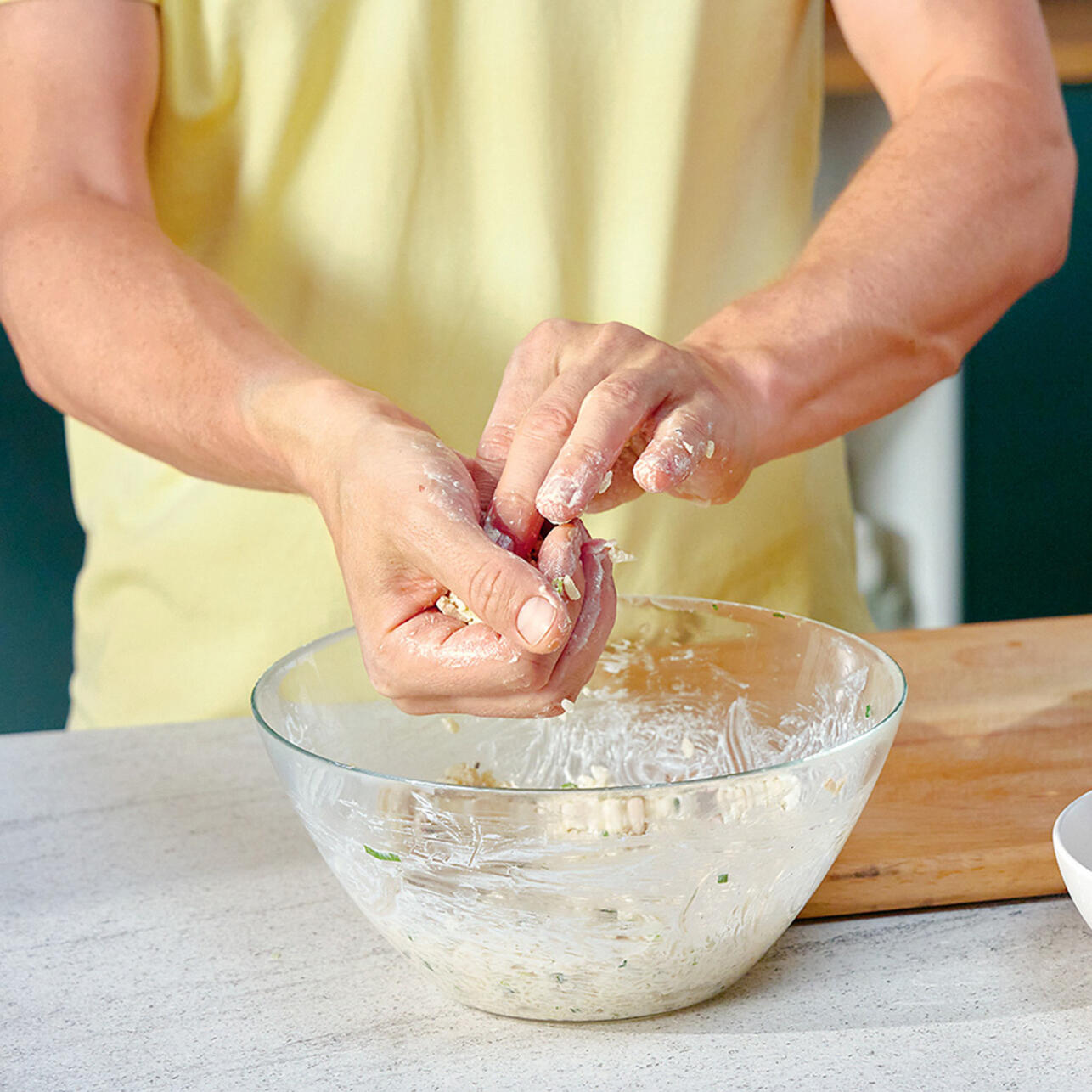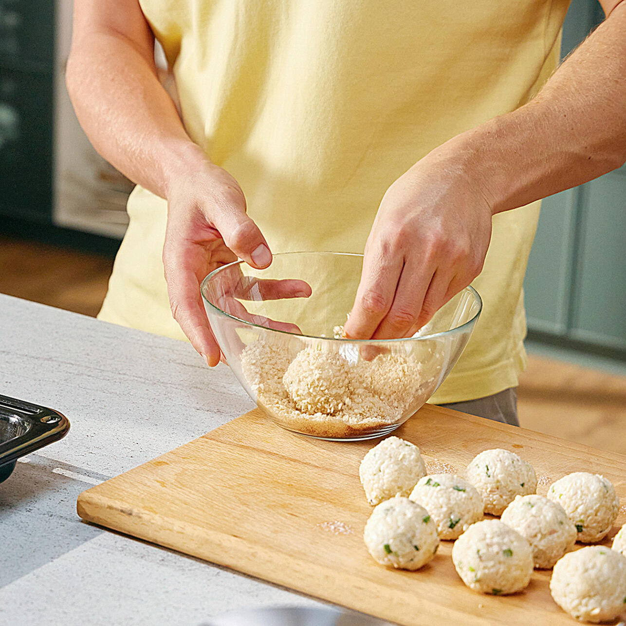 Смочить руки водой и скатать из полученной массы 15 шариков среднего размера.