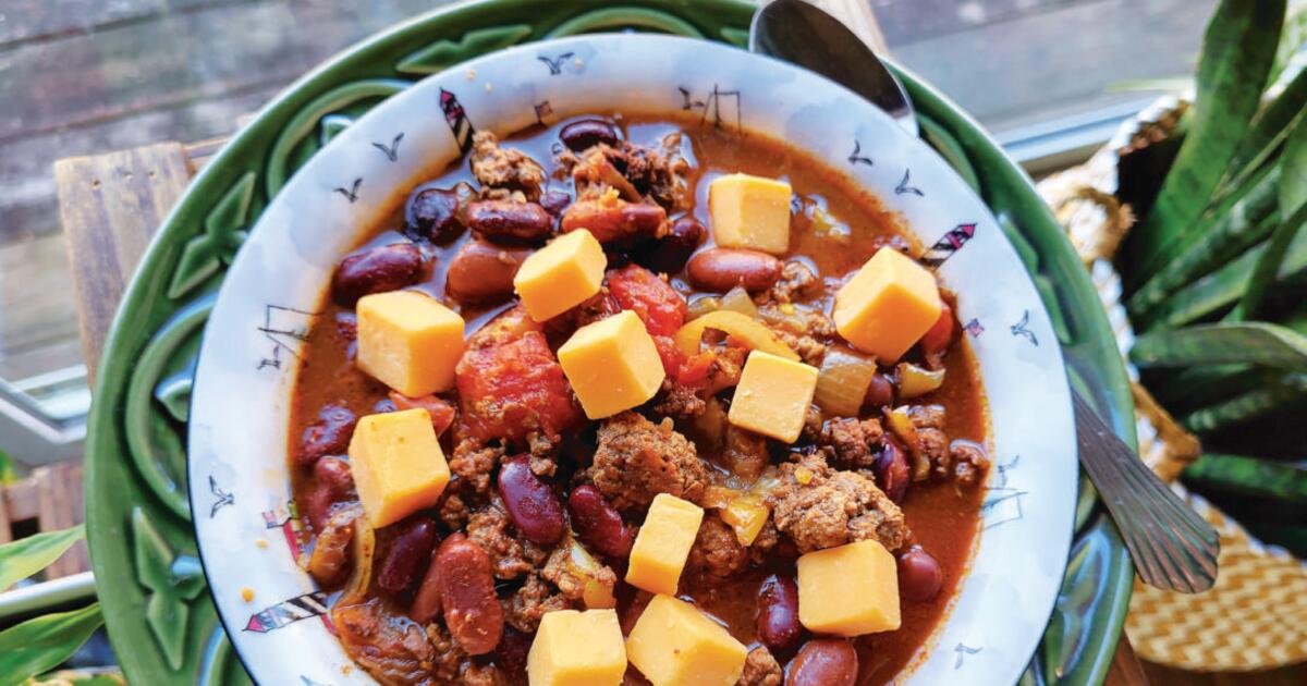 После того как чили будет полностью готов, добавьте несколько кубиков сыра чеддер и наслаждайтесь!