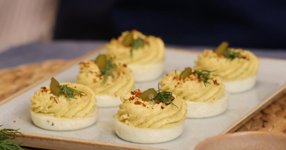 «Рецепт недели на этот раз — разделённые яйца! Только не совсем обычные. Получается красивая, оригинальная и очень нежная закуска. А ещё это прямо-таки кладезь полезных ингредиентов — яйца, йогурт, зелень! Смело зажигаем зелёный свет на нашем светофоре», — говорит телеведущий и врач по образованию Сергей Малозёмов.