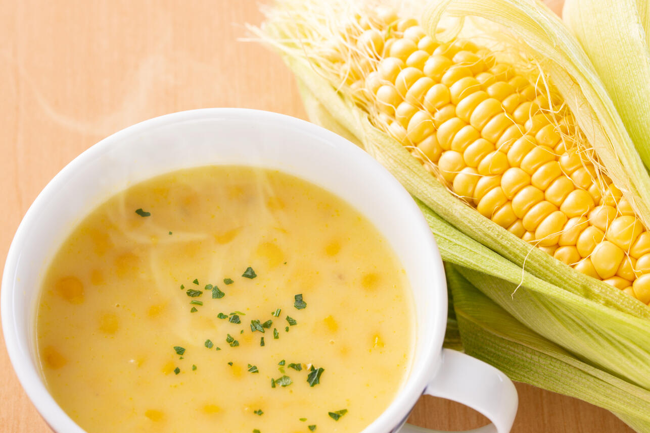 Разгар лета — идеальное время для различных кулинарных экспериментов, особенно с овощами, фруктами и ягодами. Можно купить свежие продукты по доступным ценам и насладиться вкусом ароматных блюд. Однако немаловажно, чтобы не приходилось корпеть на кухне целый день. Куда лучше тратить свободное время на прогулки и встречи с друзьями! Предлагаем сделать насыщенный сливочный суп из кукурузы: можно взять ее в початках или использовать консервированную — и через 20-30 минут на вашем столе будет дымиться идеальное первое блюдо для настоящих гурманов.