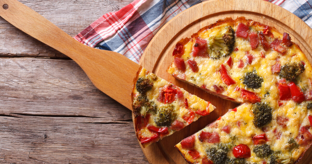 Полить соусом начинку из томатов и брокколи, посыпать 50 г тертого пармезана и поставить форму в разогретую до 200 градусов духовку на 40 минут.