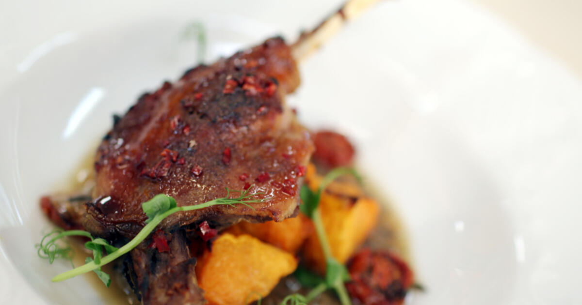 Медовая утиная ножка с тыквой и луковым соусом