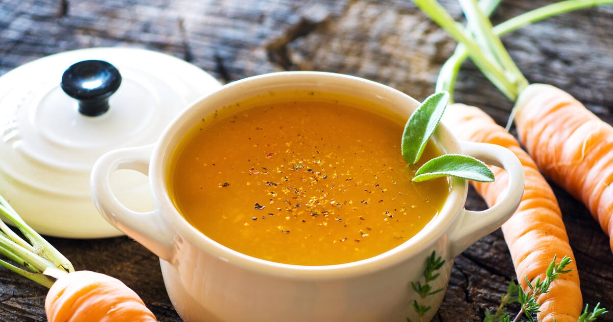 Налейте в кастрюлю немного бульона, добавьте морковь и варите ее около 4 минут на сильном огне, пока она не начнет размягчаться.