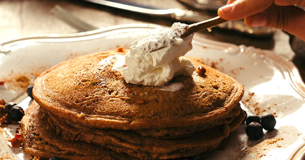 Добавьте фрукты и ягоды, йогурт или кленовый сироп по вкусу это идеально дополнит вкус панкейков.