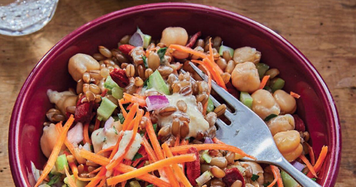«Кроме нута, овощей и пикантной горчичной заправки, в этом салате есть сытная, плотная ржаная крупа. Он готовится довольно долго, но это того стоит. Ваши вкусовые рецепторы и организм скажут вам спасибо», — говорит врач и эксперт по правильному питанию Майкл Грегер.