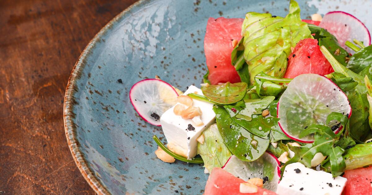 Салат с арбузом, брынзой и орехами: рецепт от шеф-повара Михаила Кощеева