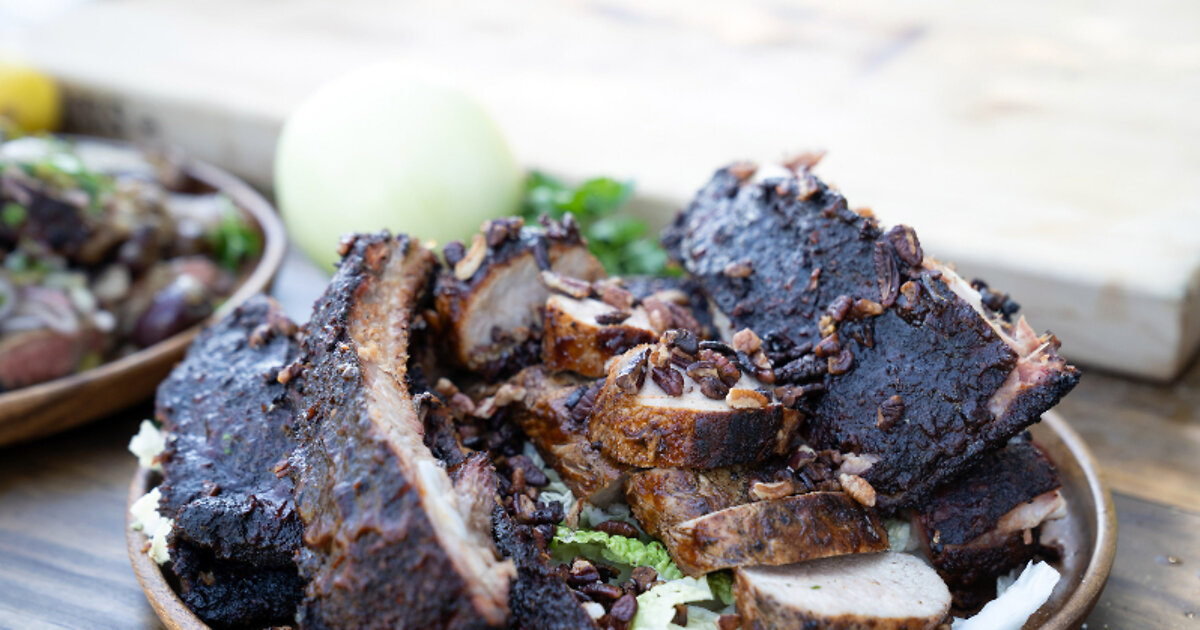 алеппо, сушеный имбирь, соль и перец. Щедро натрите ребрышки с обеих сторон.