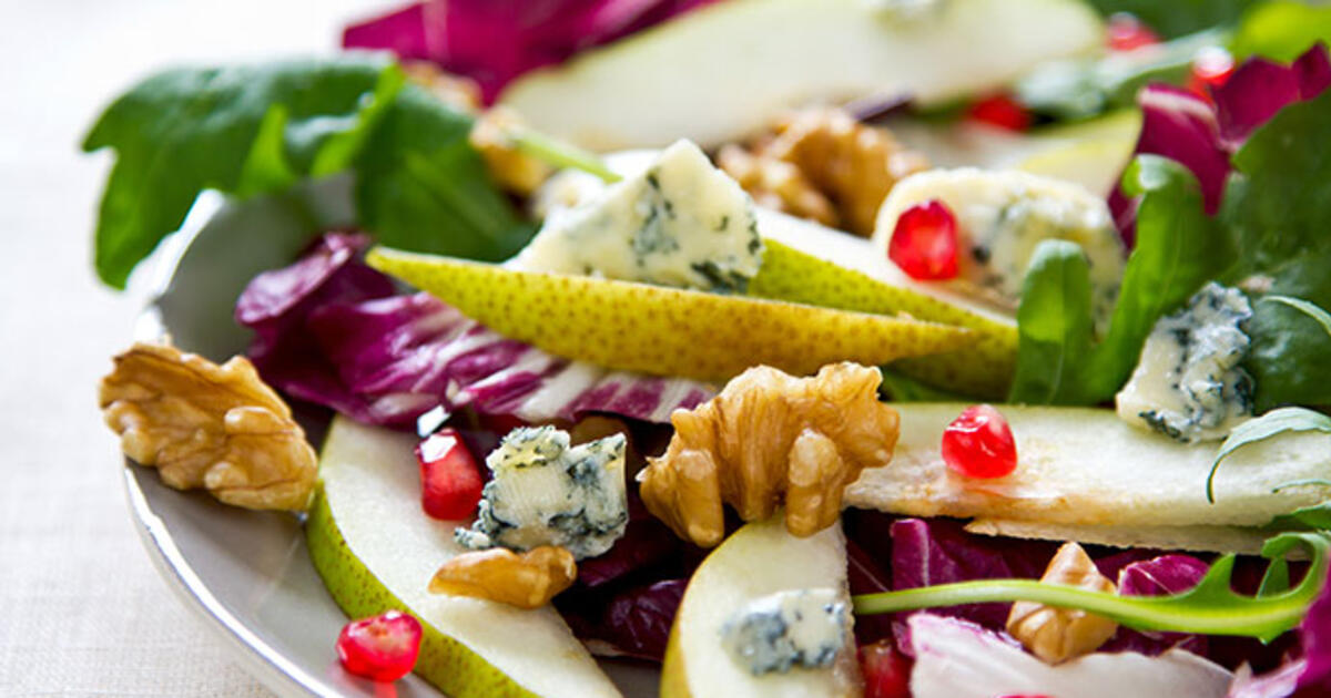Салат из романо с горгонзолой, грушей, виноградом и грецким орехом от Андрея Токачева