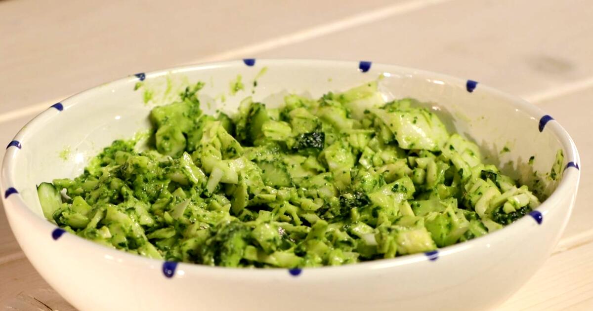 «Рецепт недели на этот раз — максимально зелёный салат! Получается небанально по вкусу из-за яркого соуса, при этом по-весеннему свежо и несомненно полезно — сам цвет ингредиентов напоминает о том, что в них много той пользы, которая вообще характерна для овощей — витамины,антиоксиданты, клетчатка. А еще тут здоровые жиры», — говорит телеведущий и врач по образованию Сергей Малозёмов.