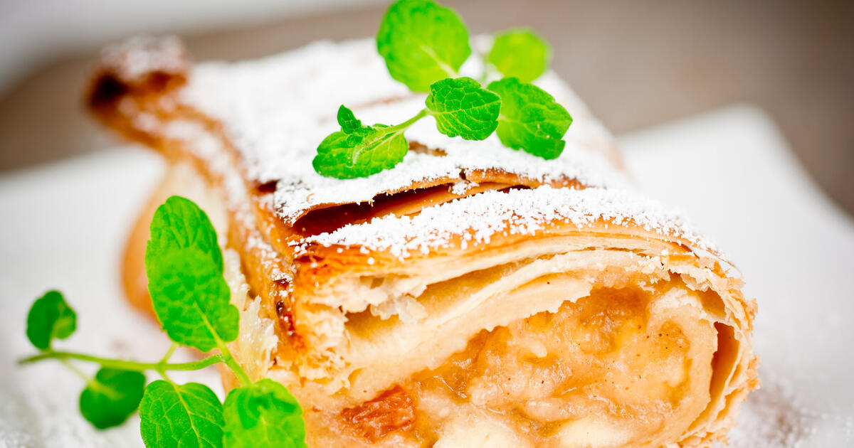 Приготовление штруделя требует особого умения — тесто для него должно быть тонюсеньким, как папиросная бумага, а раскатывают его не на доске, а на специальной полотняной салфетке, посыпанной мукой.