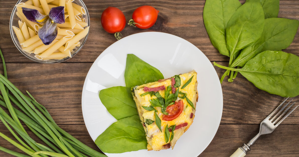Омлет с макаронами и шпинатом