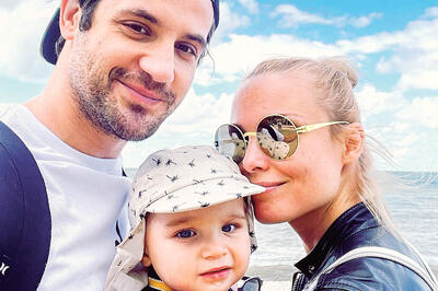 Марк широко улыбался прессе, сын выглядел несколько настороженным, крепко держась за руку отца.