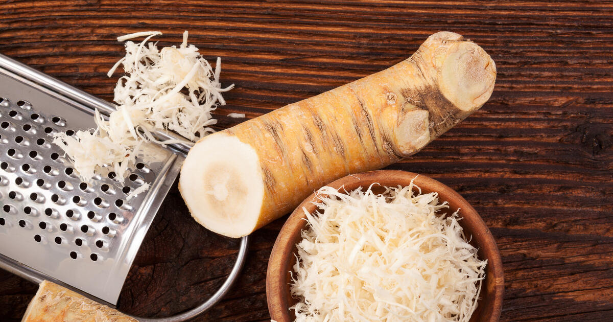 В конце сентября, пока не наступили заморозки, самое время выкопать хрен, чтобы заготовить его на зиму. Для хранения лучше всего выбирать молодые корни, которым не больше 2-3 лет — они наиболее сочные и вкусные. Перед уборкой овощей листья желательно укоротить до 10–15 см, после чего аккуратно выкопать хрен вилами, стараясь не повредить. Оптимально выбирать длинные и ровные корни со светлой кожицей толщиной 2–5 см, срез которых имеет бежевый цвет. Их следует очистить от земли и промыть, предварительно замочив, а потом обрезать мелкие отростки и подсушить в тени.