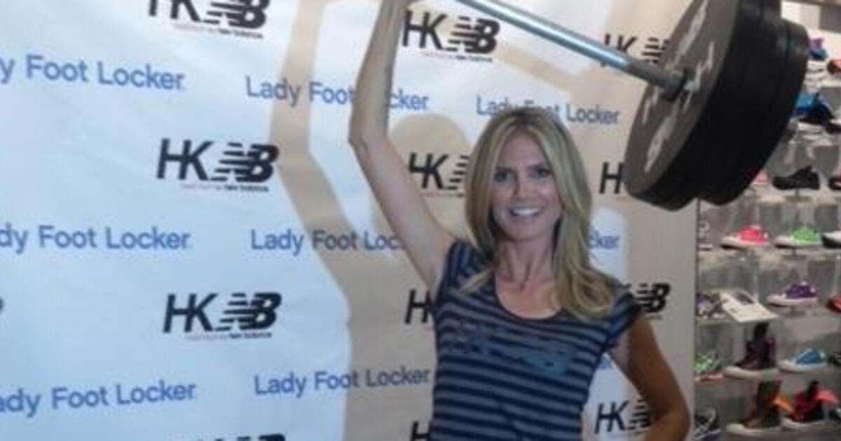 Хайди Клум сделала отличный подарок всем женщинам, следящим за своей фигурой и регулярно посещающим спортзал. Супермодель представила новую линию одежды New Balance для занятий фитнесом. «Тренируюсь до пота, поднимая тяжести в «Lady Foot Locker», скоро буду давать автографы», — написала топ-модель в «Твиттере». Для своего микроблога Хайди выбрала фотографию, на которой она одной рукой поднимает весьма внушительную штангу.