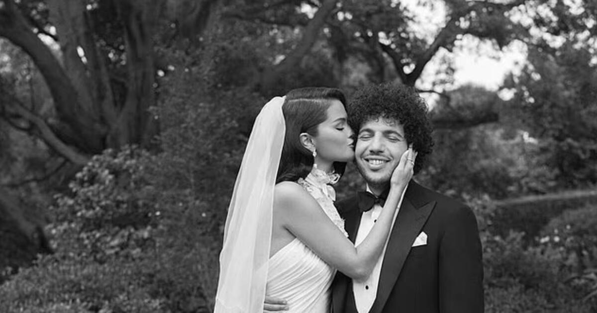 Селена Гомес, которая стала в минувшие выходные законной супругой своего любимого мужчины Бенни Бланко, решила поделиться серией фото, сделанных на свадьбе в Калифорнии. Благодаря этому стало известно, что на торжествах Селена блистала не в одном, в трех великолепных нарядах, в одном из которых был спрятана специальная деталь, прославляющая ее любовь к Бенни. Позднее эти фото были опубликованы также в ряде изданий, в том числе в Page.six.