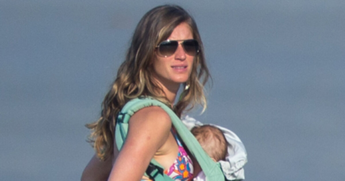 Папарацци запечатлели семейство Бюндхен на одном из пляжей. Модель, одетая в разноцветное бикини, убаюкивала Вивиан, сидевшую в слинге, а ее супруг - Том Брэди - рассекал по пляжу на квадрацикле.