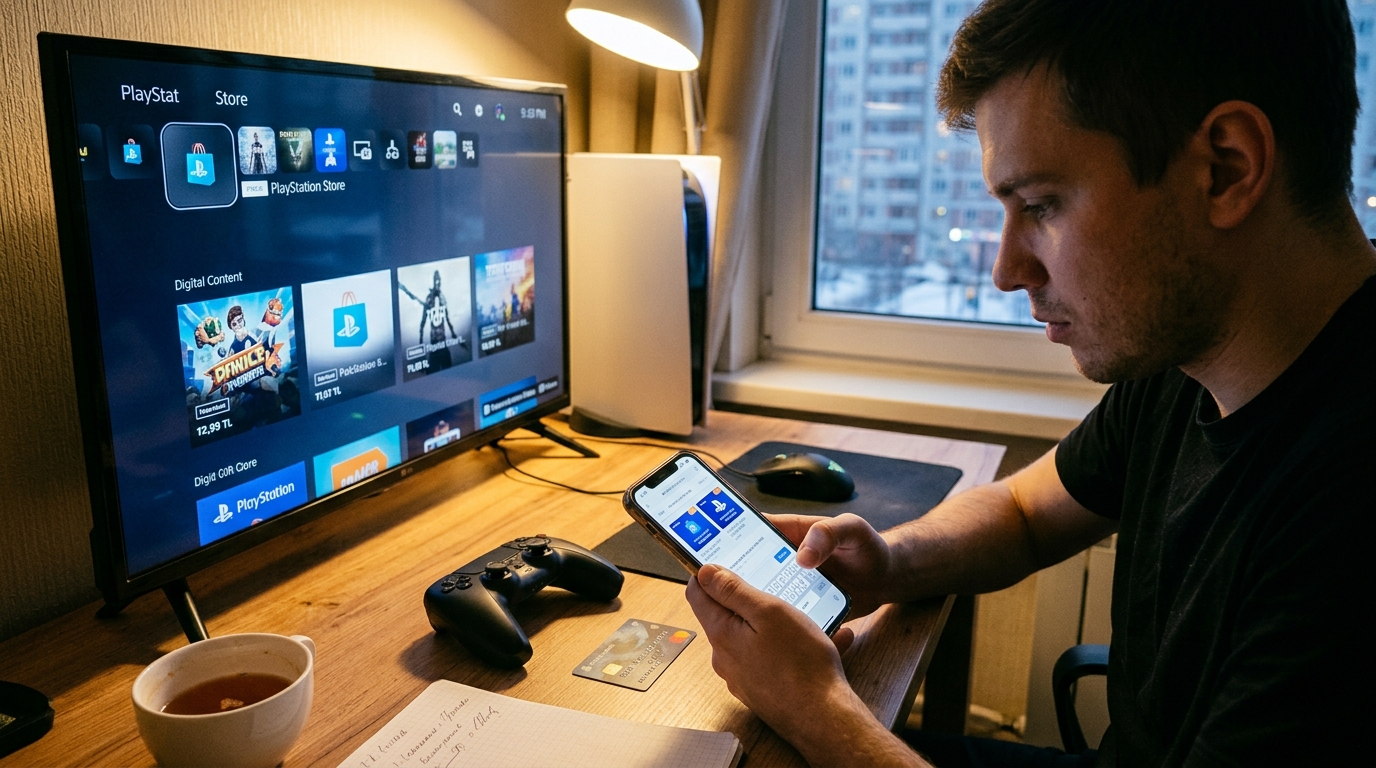 Код вводится в PS Store через раздел «Активировать коды» на консоли (кнопка «Погашение кодов» в боковом меню магазина) или через браузер на странице store.playstation.com в разделе профиля. После активации сумма зачисляется моментально — никаких задержек. Один важный нюанс: код должен соответствовать региону вашего аккаунта — турецкая карта активируется только на турецком аккаунте, американская — только на американском.