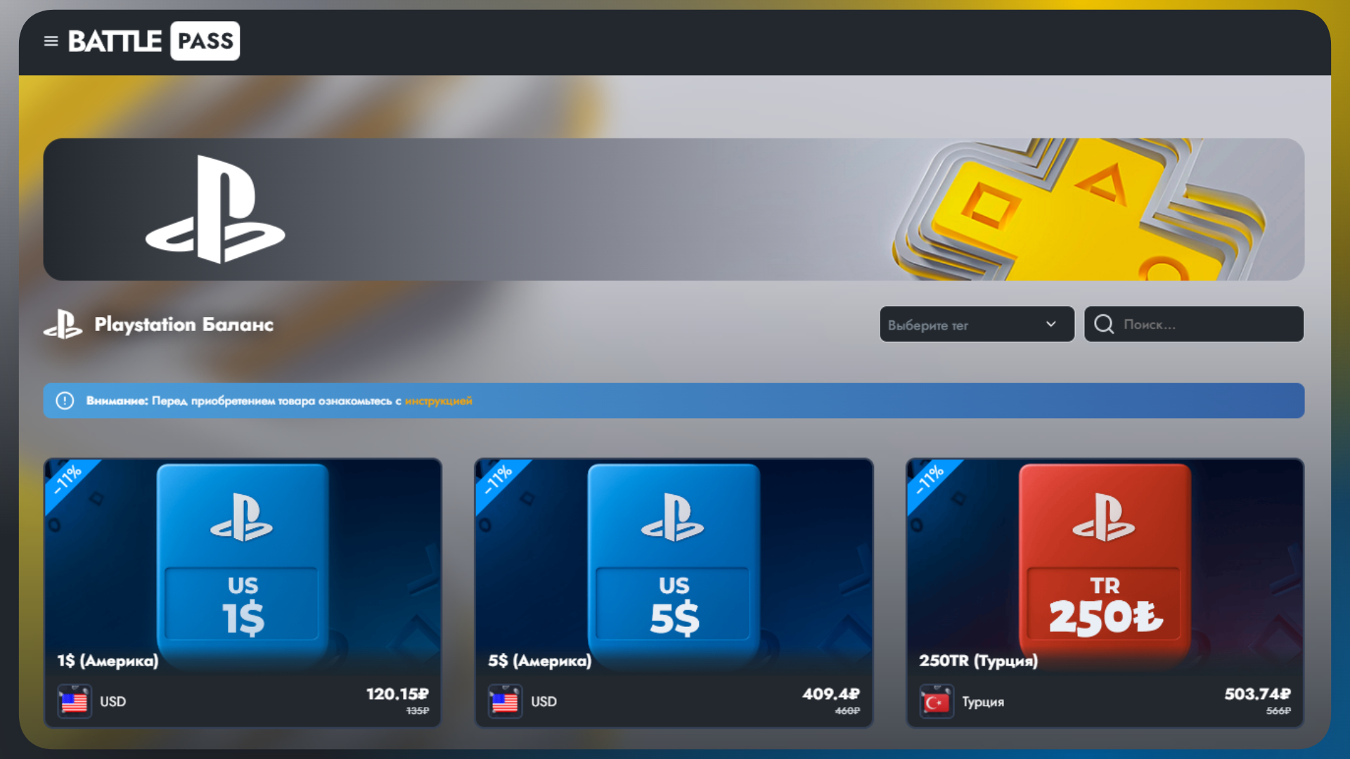 Подарочные карты PSN (PSN Gift Cards) — это цифровые коды, которые продаются на специализированных маркетплейсах и активируются прямо в PlayStation Store. По сути, это аналог того, что предлагает Battlepass, но вы самостоятельно ищете продавца и получаете код.