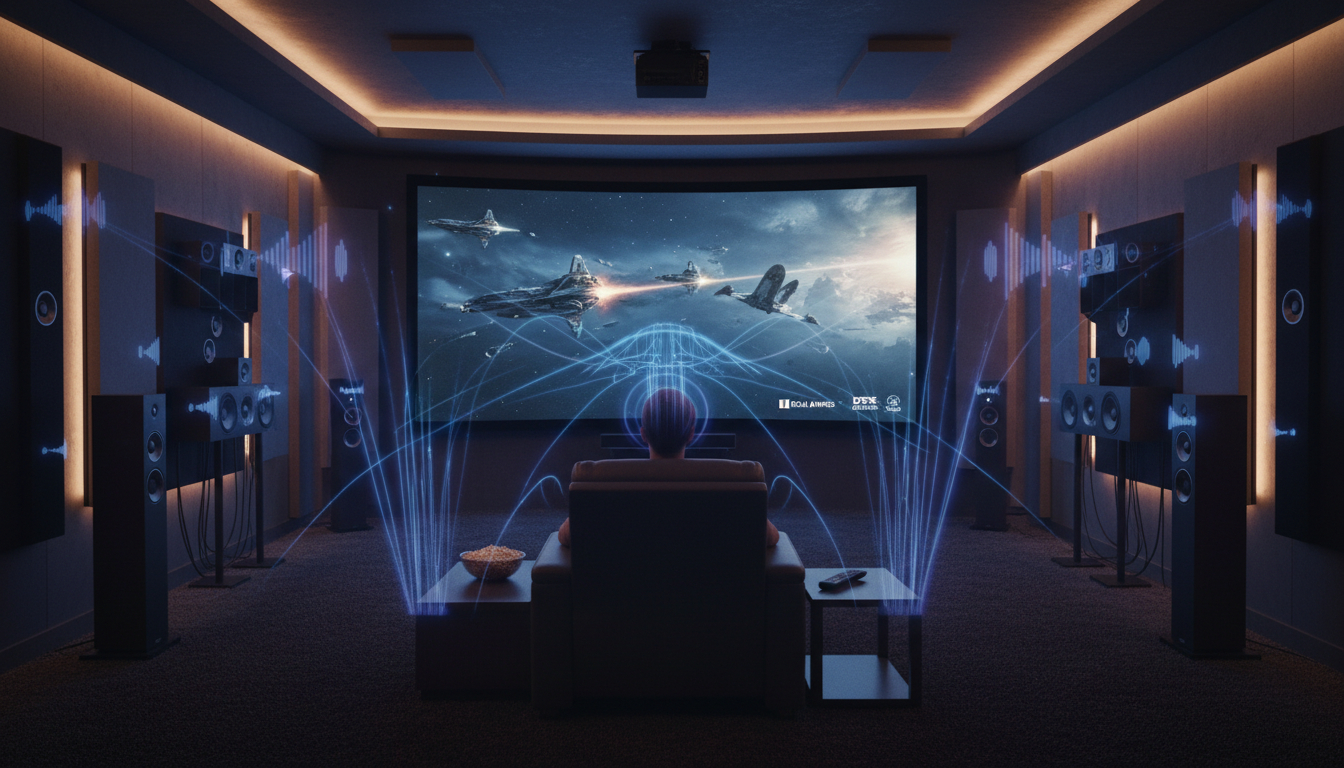 Современные аудиоформаты создают трехмерную звуковую сцену, где звук перемещается не только по горизонтали слева направо, но и по вертикали от пола к потолку. Поддержка этих технологий превращает просмотр фильмов в захватывающий опыт, близкий к коммерческим кинотеатрам с десятками динамиков.