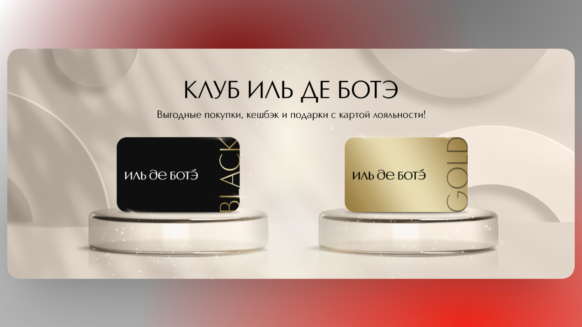 Участник базового уровня программы получает постоянный дисконт и кэшбэк 3% с каждой покупки. По мере накопления суммы покупок открываются следующие статусы — вплоть до Platinum. Держатели Platinum-карты могут рассчитывать на увеличенную скидку (до 25%) и повышенный кэшбэк 5%. Накопленные баллы обмениваются на иль де ботэ промокод на скидку при следующей покупке. Постоянных клиентов также ждут персональные бонусы, закрытые акции и бесплатная доставка.