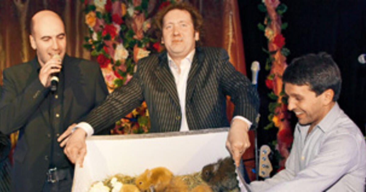 Вторым неожиданным подарком стала картонная коробка с 15 кроликами (один из спектаклей театра называется «Быстрее, чем кролики»). Не успели именинники толком разглядеть живой подарок, как пришедшие их поздравить друзья принялись тискать ушастых. Несколько животных тут же обрели новых хозяев. Одной из владелиц стала Нонна Гришаева. «Моя дочь Настя давно просила купить ей кролика — ведь у нас дома нет ни кошки, ни собаки, — рассказала актриса на следующий день. — Настя назвала крольчиху смешным именем Амайя. С утра пораньше пришлось бежать в зоомагазин — надо же узнать, как ухаживать за кроликами.