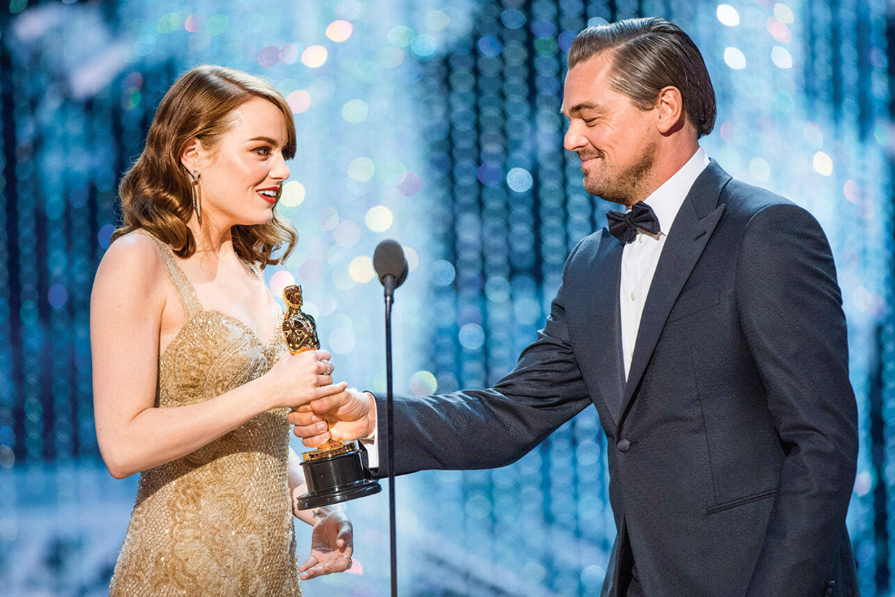 Даже самые строгие и принципиальные критики признавали, что на экране случилась редчайшая комбинация: атмосфера, какая бывала вокруг звезд старого голливудского небосвода, органично соединилась с реальностью. Актеры, наделенные тем самым гламуром и отблесками золотого века Голливуда, выглядели при этом нашими современниками из плоти и крови. Фильм получил 14 номинаций на «Оскар». Премию за лучшую женскую роль вручили Эмме Стоун, чему очень радовался ее партнер по фильму Райан Гослинг. Он тоже был номинирован, но статуэтка ему не досталась. А актрисе «Оскар» вручал Лео Ди Каприо. И Эмма уверяла, что по дороге к сцене в голове вихрем проносились такие мысли: «Господи, он же мой кумир! Я же смотрела «Титаник» семь с половиной раз только в кинотеатре. Лео «висел» в моей комнате — его фото с подписью, которую я чудом получила как-то на свой 12-й день рождения!»