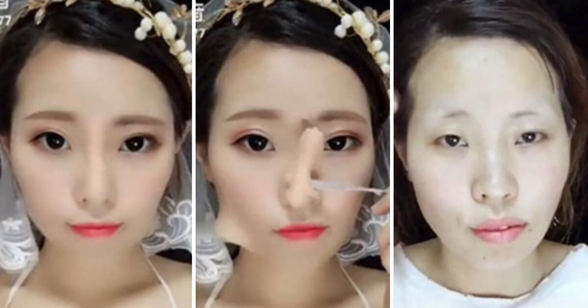 На видео, недавно вышедшем на китайском YouTube-канале, посвященном красоте, показано, как девушки удаляют макияж и превращаются совсем в других людей после снятия косметики. Сравнивая их фотографии «до» и «после», порой невозможно поверить в то, что на них запечатлен один и тот же человек. В ход для создания такого пластического грима идет специальный воск цвета кожи (он, как тональный крем, продается в разных оттенках, поэтому его можно подобрать точно в тон своему лицу и даже сочетать несколько тонов, чтобы создать рельеф и нужную игру света и тени). Также китаянки используют специальные наклейки для поднятия нависающего века и закрепления «лишних» тканей лица – например, для уменьшения челюсти.