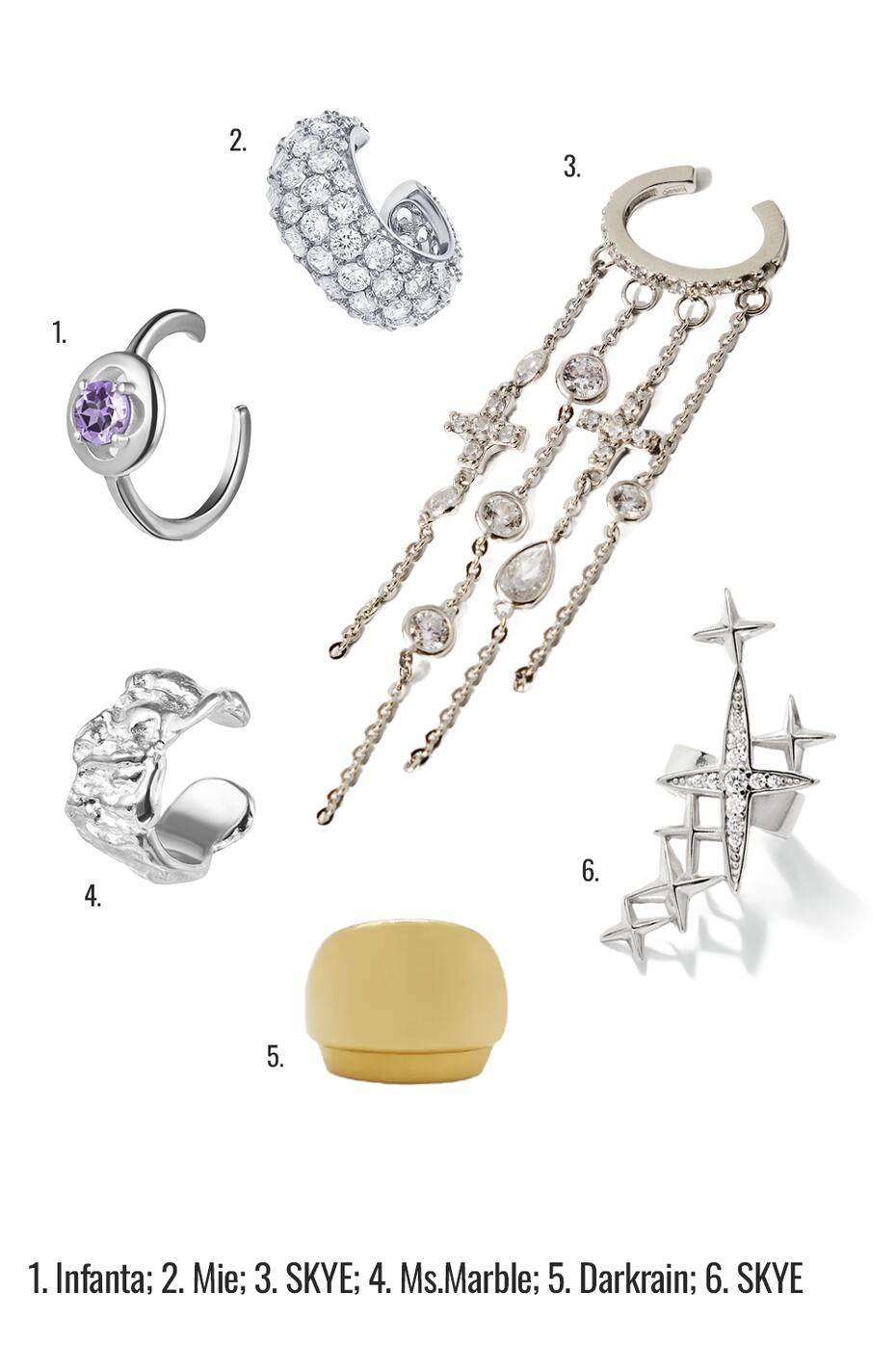Это маст-хэв для тех, кто хочет выглядеть дорого без проколов лишних дырок. Тренд: геометрия и цепи. Один серьезный кафф на хрящик в паре с лаконичной серьгой-гвоздиком создают тот самый «подиумный» лук.