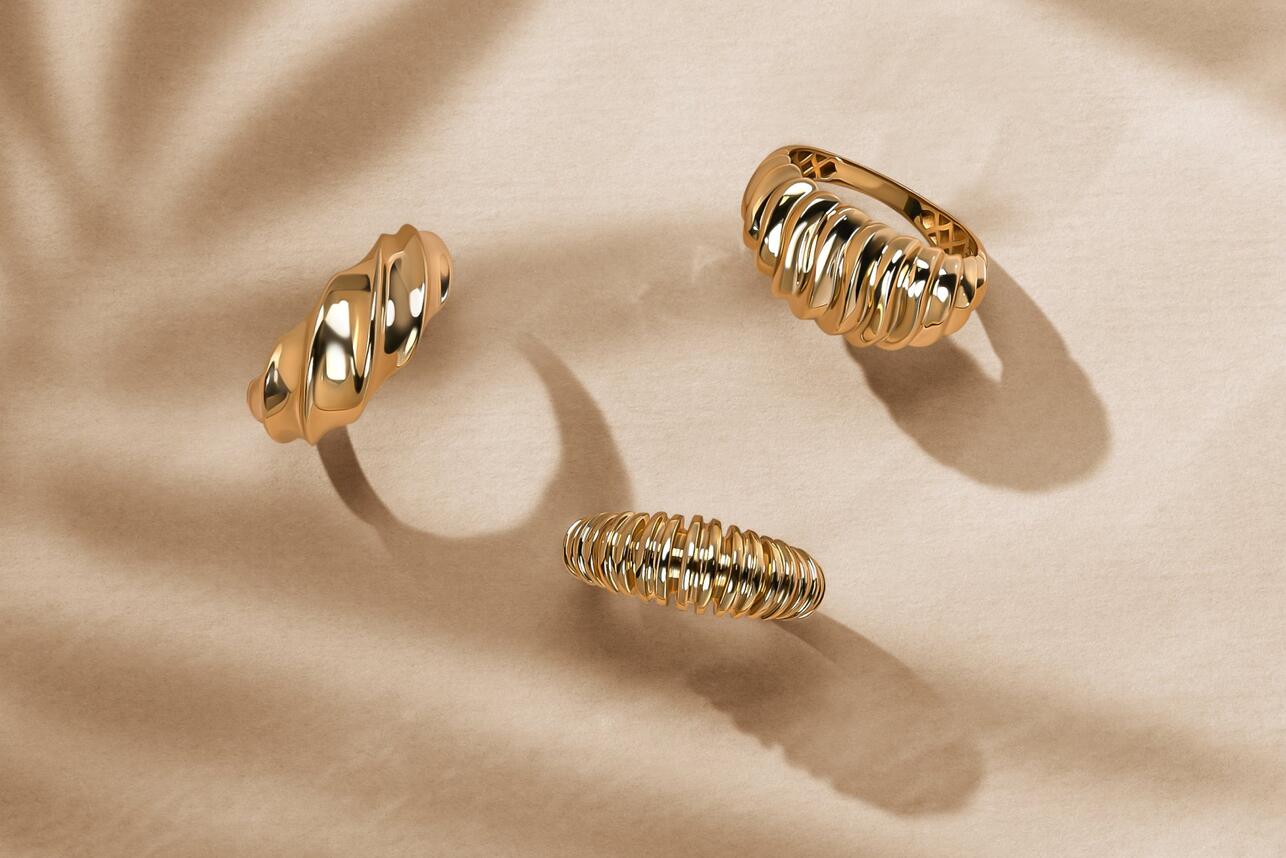 Если хочется выразительных украшений — присмотритесь к коктейльным кольцам, как предлагают дизайнеры бренда Dafna. Такие архитектурные украшения будут хорошо смотреться в повседневном гардеробе — даже в простом ансамбле с футболкой и черными брюками или джинсами. Возможно эта та самая нотка, которой не хватало образу.