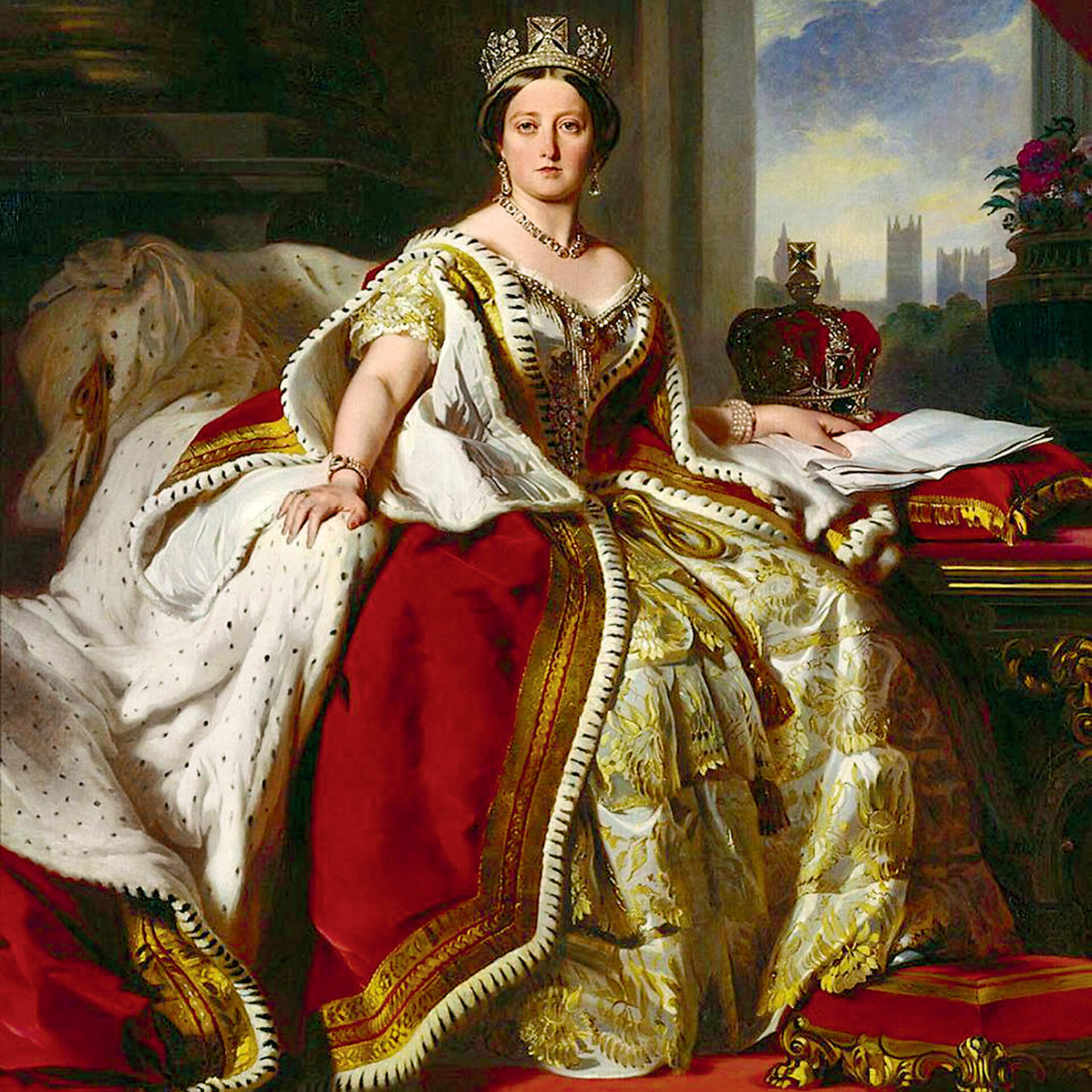 Его величество обожал бархатные мантии, отделанные золотом, мехом и вышитыми лилиями — символом французской королевской власти. Российская императрица Екатерина II тоже любила бархат, что нашло отражение в ее портретах XVIII века. Материал использовали для торжественных нарядов — на придворных балах, приемах и официальных мероприятиях. Бархат в Россию в то время импортировался из Франции. Еще одна поклонница этого материала — британская королева Виктория, которая занимала трон больше 60 лет. Она имела в своем гардеробе немало платьев из бархата. Присутствовал он и в ее коронационном наряде в 1838 году. Из малинового бархата сшили верхнее платье с широкими рукавами с золотой вышивкой и отделкой из меха горностая.