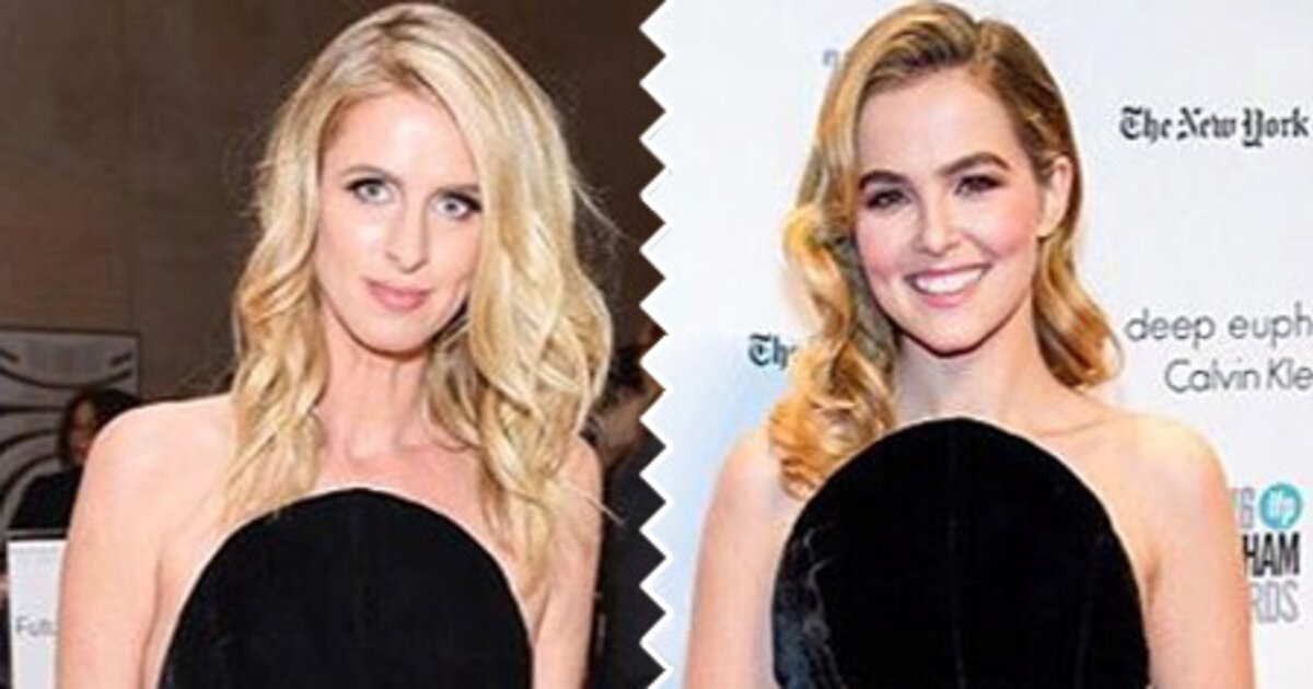 Предмет сегодняшнего модного «спора» — декольтированное черное мини-платье от бренда Monse с интересным серебряным декором на подоле. Оно понравилось сразу двум светловолосым барышням. Первую участницу «битвы» барышней, правда, можно назвать с трудом— 33-летняя Ники Хилтон, наследница знаменитой фамилии, правнучка основателя одной из самых крупнейших империй пятизвездочных отелей, модель и светская львица, не так давно вышла замуж за другого известного наследника другой знаменитой фамилии Джеймса Ротшильда. Вторая участница поединка — персона поскромней и помоложе, Зои Дойч, 22-летняя американская актриса, снявшаяся в фильме «Академия вампиров». Родная сестра Пэрис Хилтон надела это платье с черными туфлями-лодочками. А юная звезда экрана предпочла серебряные босоножки.