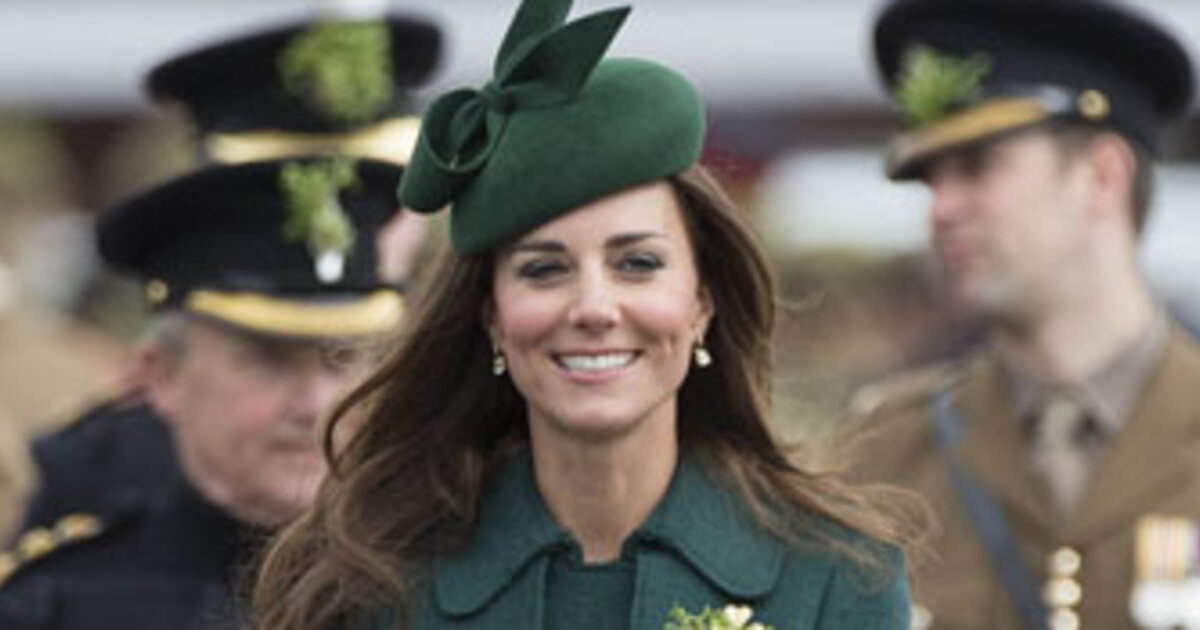 17 марта герцогиня Кембриджская Кэтрин вместе со своим супругом, принцем Уильямом приехала в английский городок Алдершот, чтобы посетить 1-й батальон ирландской гвардии, который выступил на параде в честь Дня святого Патрика. Кейт вручила офицерам и гвардейцам полка традиционные веточки трилистника.