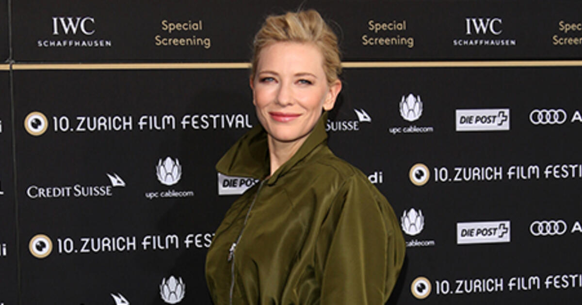 На специальном показе фильма Вуди Аллена «Жасмин», прошедшего на Международном кинофестивале в Цюрихе, актриса Кейт Бланшетт появилась в эффектном платье-пальто от Christian Dior. Оригинальной деталью платья из струящейся ткани болотного оттенка стал высокий ворот. Светлый кожаный ремень подчеркивал безупречную талию 45-летней актрисы, а цвет наряда оттенял светлую кожу Кейт.
