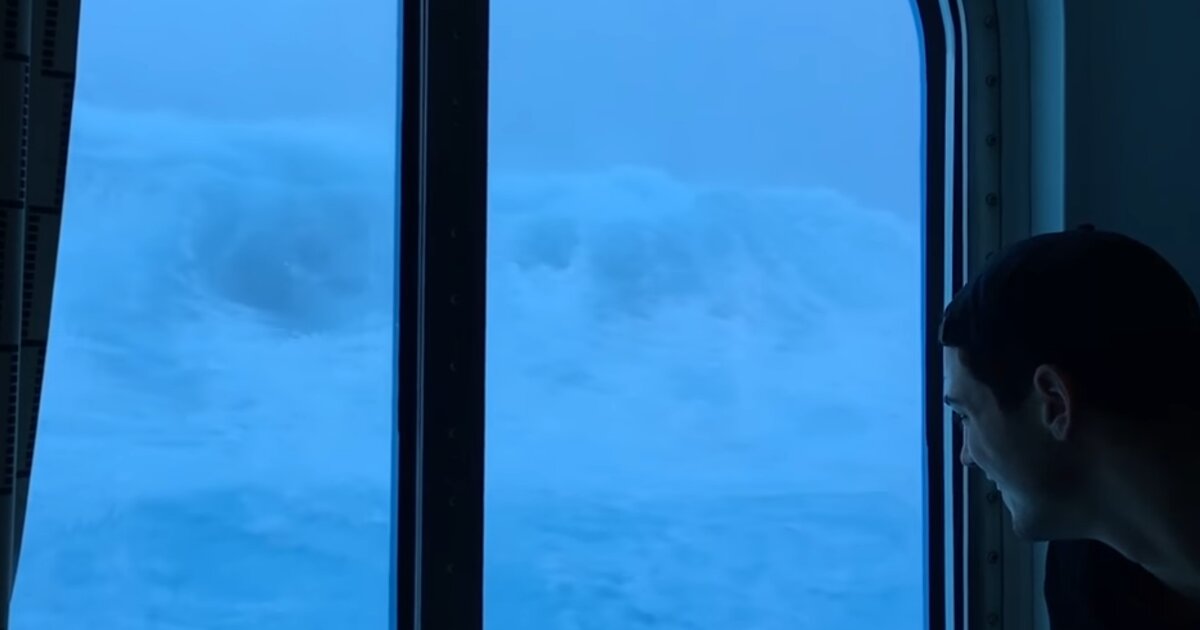 По пути из Нью-Йорка во Флориду круизное судно «Anthem of the Seas» (Гимн морей) попало в сильнейший шторм. Герои видео находились в каюте на третьей палубе и сняли удары огромных 9-метровых волн.